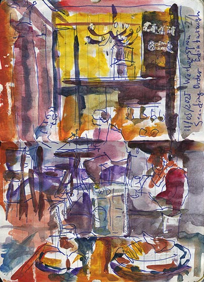 This was the third visit for me to this Wetherspoon. And It was the fifth picture of the day. Three large paintings and two small sketches - I was very productive today.
