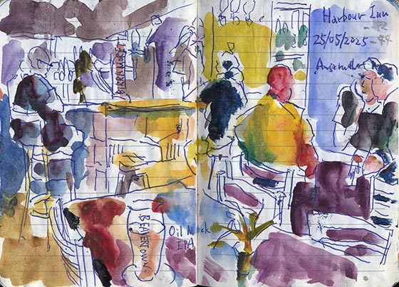 Monica gave me a lift to my Inn. We met the landlady. Monica introduced me to her as a Japanese artist. I went to my room to retrieve my brochures of the UK paintings. I gave some of them to her, and she prompted me to have a beer in the pub area. I waited for my son to return from the coastal walk.