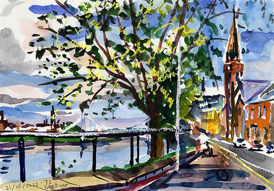 I painted my third large picture by the river. Almost finished this picture, there came a call from my son. And we had a late lunch/early dinner together at the Waterfront Restaurant.