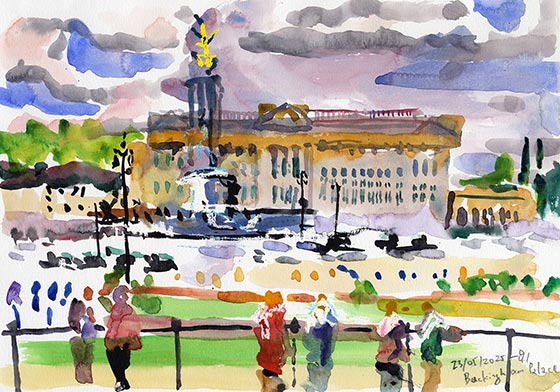 I continued walking and painted the Buckingham Palace.