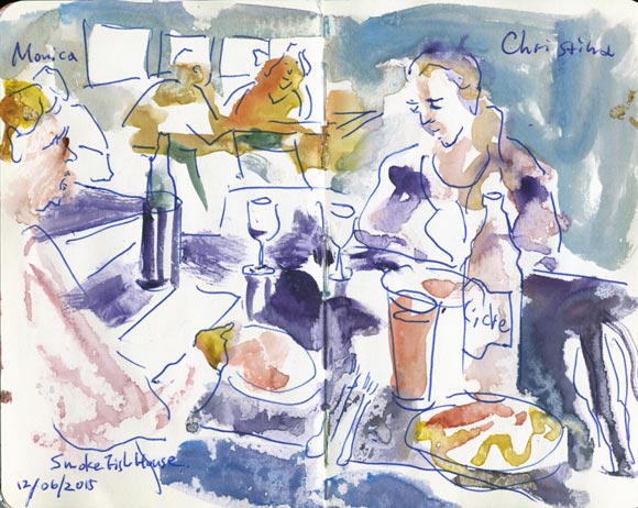私たちは友達の結婚式に参列するために、スコットランドに戻って来てモニカの家に二泊するスエーデン娘のクリスティーナも交えて、ディナーを楽しみました。
