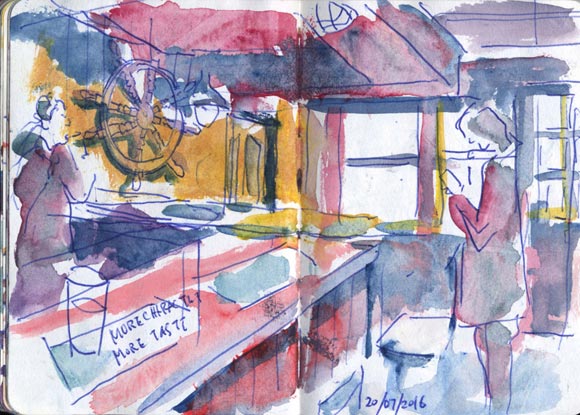 私は村外れの"ドリール・居酒屋"が好きなのですが営業を中止していて建物の周りには足場が組まれていました。それで港に面したこのパブに来ました。