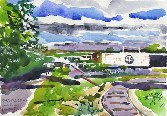 第36番閘門のハンドル(ゲートの上部)をクローズアップして描きました。