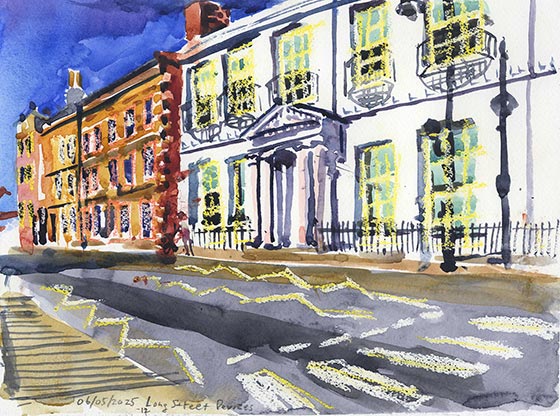 ウィザースプーンでの昼食後、息子と別れて、私は博物館近くのロング・ストリートで真っ白な建物を描きました。2時間後に再会して、スリー・クラウンズ、パブで地ビールを飲みました。