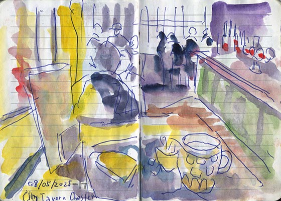 バンクルームズへ帰る途中でこのパブに引っ掛かりました。チバタを食べた昼食のパブ画を描きました。