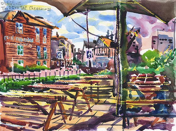 宿の道を挟んだ向かいにあるこのビアガーデンからは歩行者の景色が良く見渡せます。私はここでビールを飲みながら、息子が散歩から戻ってくるのを待っていました。