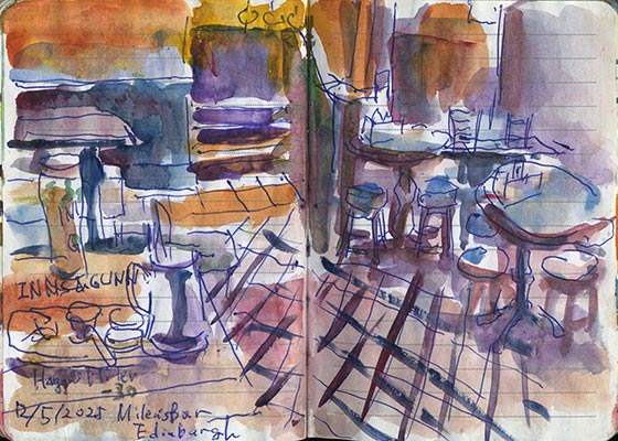 カールトン・ヒルでの制作後、私は丘を下りてミルンズ・バーに立ち寄りました。昼食にビールとハギスのフリッターをいただきました。私は約30年前、ここミルンズ・バーで、初めてイギリスのパブとは何かを理解しました。