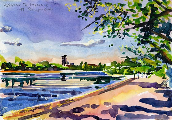 今日はロンドンに来て2日目です。たくさん歩きました。まず、息子とケンジントン・パークに行き、サーペンタインで別れました。私は水辺の風景を描き、息子は博物館のはしごに出かけました、自然史博物館、科学博物館、そしてヴィクトリア・アンド・アルバート美術館です。